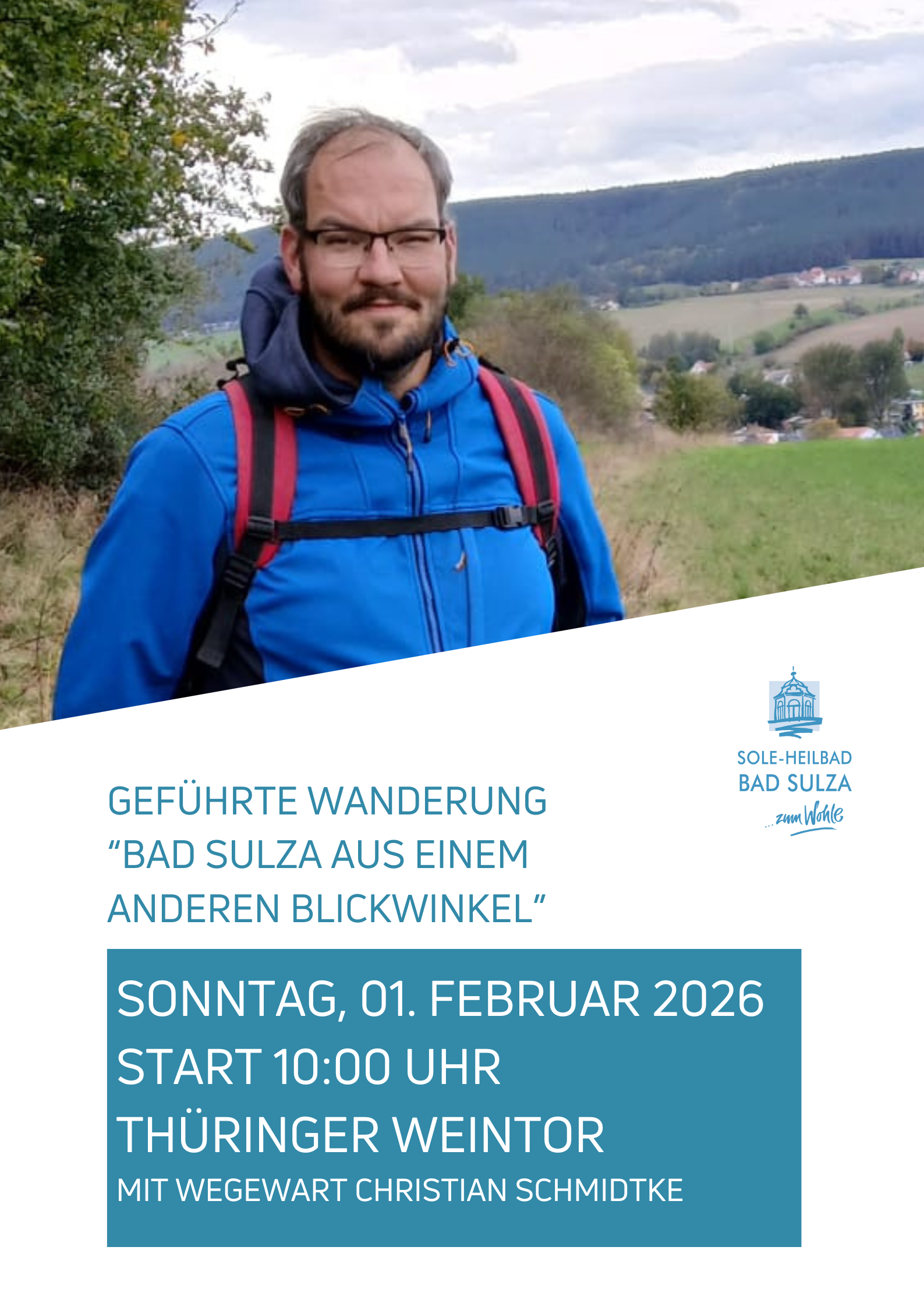 Zu einer kurzweiligen Veranstaltung laden am 31.Januar 2026 die Kurgesellschaft Heilbad Bad Sulza und der ehemalige Kurdirektor Jörg Hanf ein. Der Autor der Publikation "Erinnerungen und Gedanken" hat nach der politischen Wende zwei Jahrzehnte wesentlich zu Erhalt sowie Entwicklung der kurörtlichen und touristischen Infrastruktur Bad Sulzas beigetragen. Er liest und plaudert im Historischen Inhalatorium ab 15.00 Uhr aus seinem Buch zu sowie mit den Besuchern. Die Veranstalter freuen sich auf zahlreiche Teilnehmer. Eintritt kostenfrei - Buchkauf, auch mit Signierung, möglich durch Autor Jörg Hanf